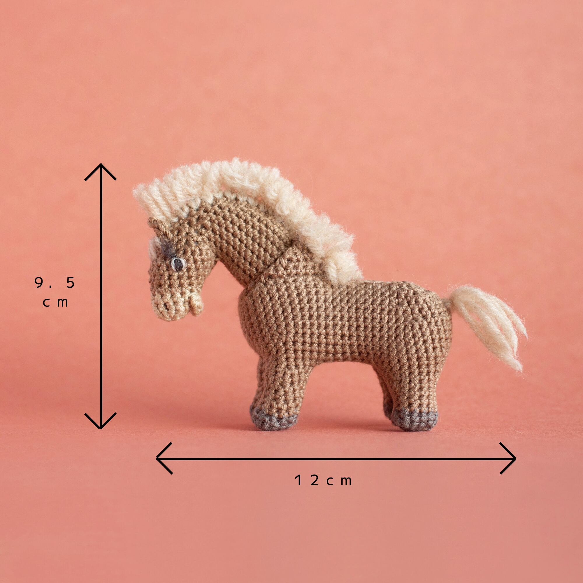 張り子の馬をイメージした、ちょっぴりゆるい表情のあみぐるみです。