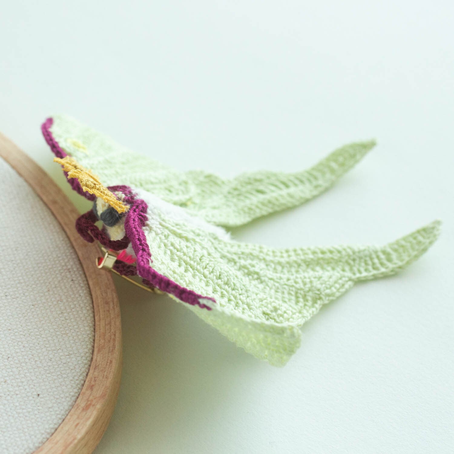 個展「花唄のかえりみち」より、オオミズアオのブローチです。